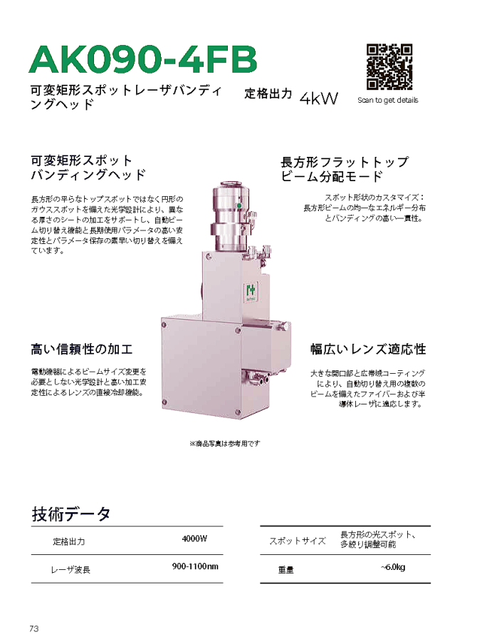 AK090-4FB 可変矩形スポットバンディングヘッド(定格4kW)