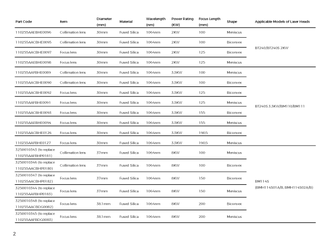 ファイバーレーザ、半導体レーザ用を豊富に取り揃えています。