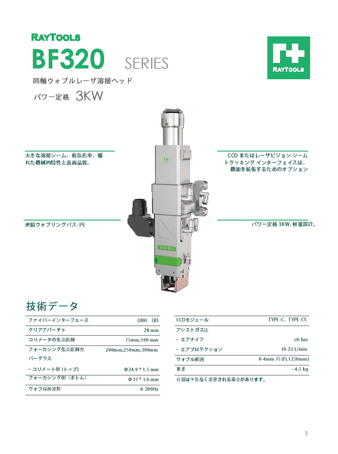 BF320同軸ウォブルレーザ溶接ヘッド(定格:3kW)