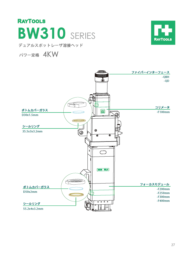 BW310 デュアルスポットレーザ溶接ヘッド(定格:4kW)