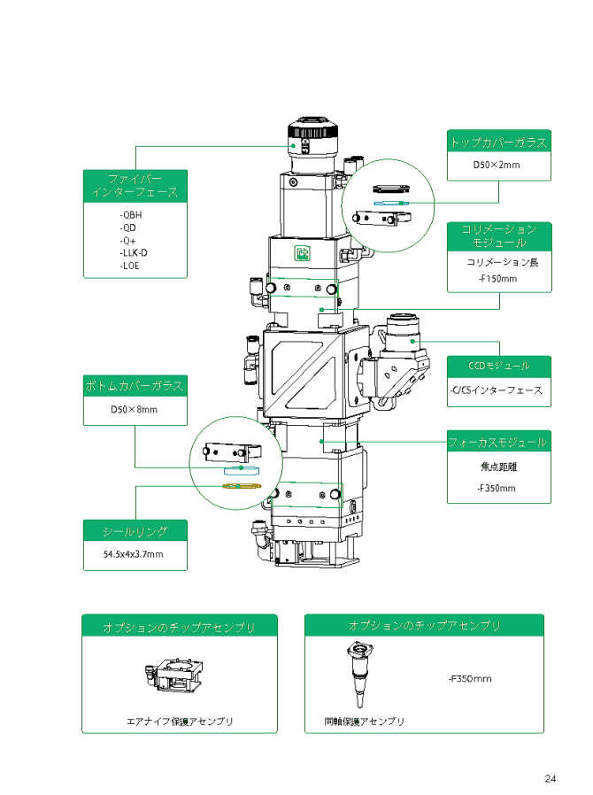 - カバーガラスホルダーは引き出し式で交換が容易です。 フォーカスレンズとコリメーションレンズを保護する3枚のカバーガラス